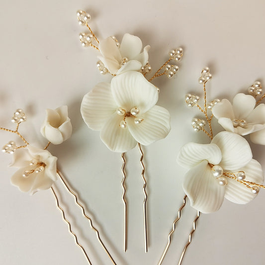 Handmade Hairpin White Ceramic Flower Hair Pins Bridal Hair Accessories For Wedding