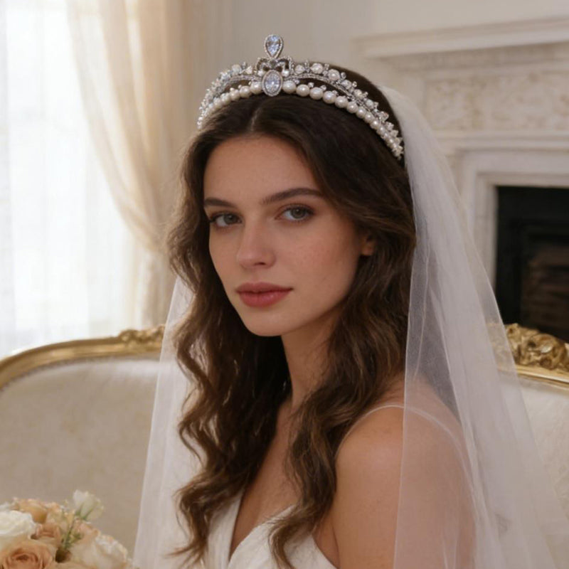Elegant Pearl Diamond Princess Tiara for Bridal Bridesmaid Crown