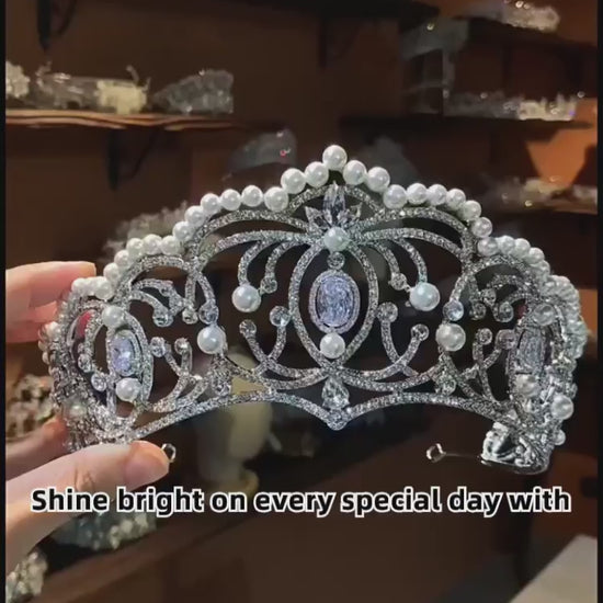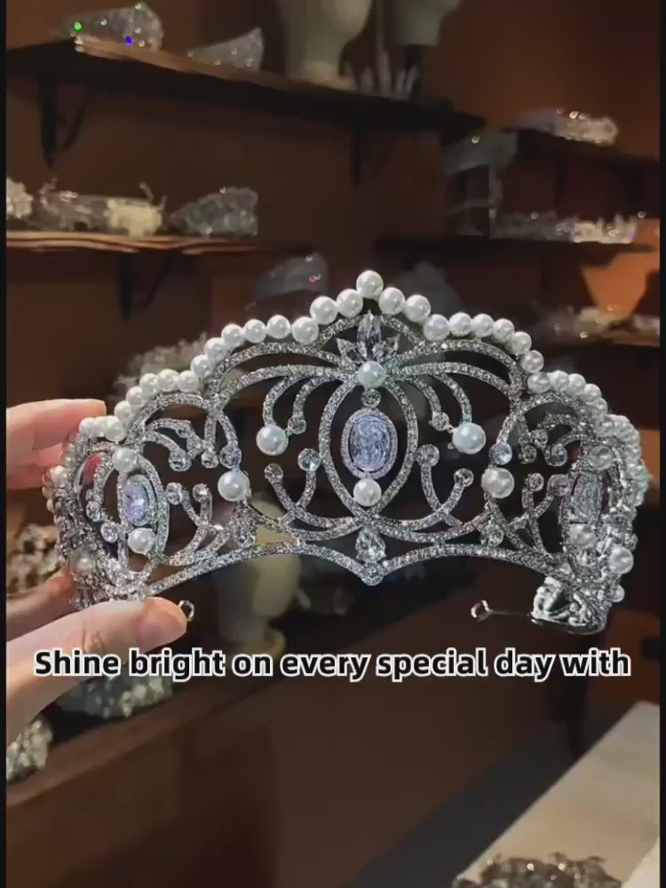 Glamorous Pearl Rhinestone Tiara for Wedding Birthday Pageant Royal Elegance Jewelry
