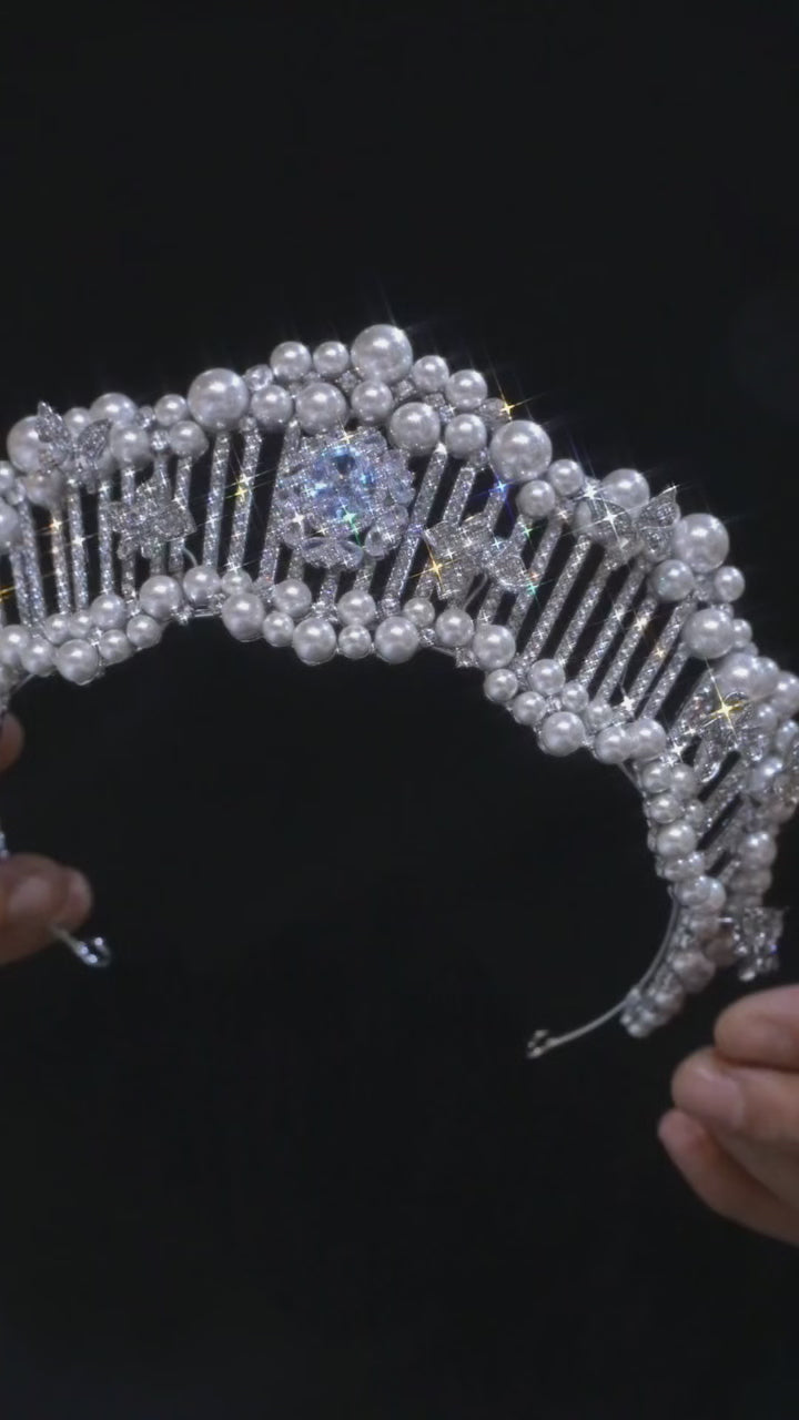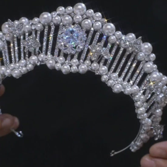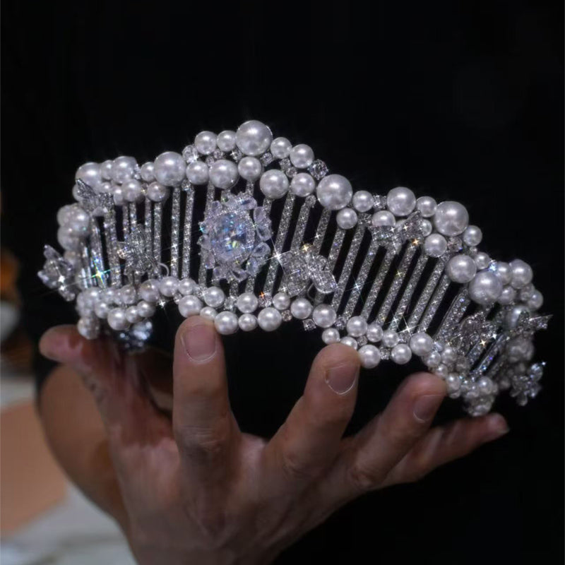 Dazzle at any moment—this exquisitely elegant tiara, adorned with zircons, sparkling crystals, and lustrous pearls, is your perfect pick for weddings, parties, birthdays, and more. Its opulent yet refined design catches light beautifully, wrapping you in timeless glamour wherever you go.