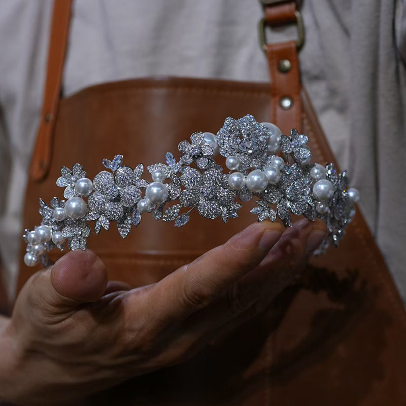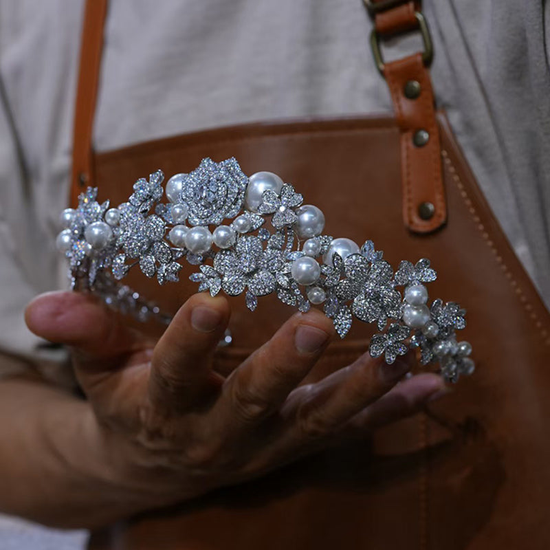 Dazzle and delight with this zirconia pearl crown! Its copper base ensures durability, while the sparkling zirconia stones deliver a brilliant, diamond-like shine that lights up any room. Ideal for brides craving a fairy-tale wedding look,birthday celebrants wanting to feel like royalty, or pageant competitors aiming to stand out.This crown fits every glamorous occasion.