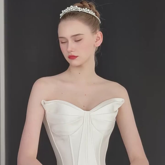 Simple Chic Pearl Rhinestone Tiara Bridal Hairpiece Wedding Hair Accessories