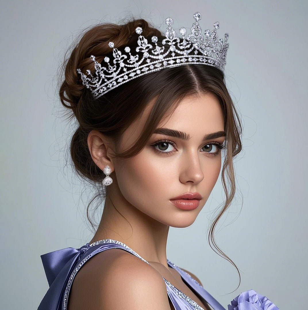 Dazzle like royalty with our zircon crown—where every stone catches the light like a fragment of starlight. Meticulously crafted to mirror the grandeur of ancient tiaras, this piece blends timeless elegance with modern sparkle. Whether it’s a wedding, gala, or moment you want to make unforgettable, let this crown turn heads and whisper stories of grace. Because you deserve to feel like royalty, every single day.
