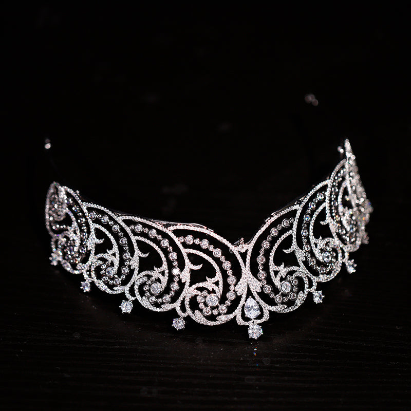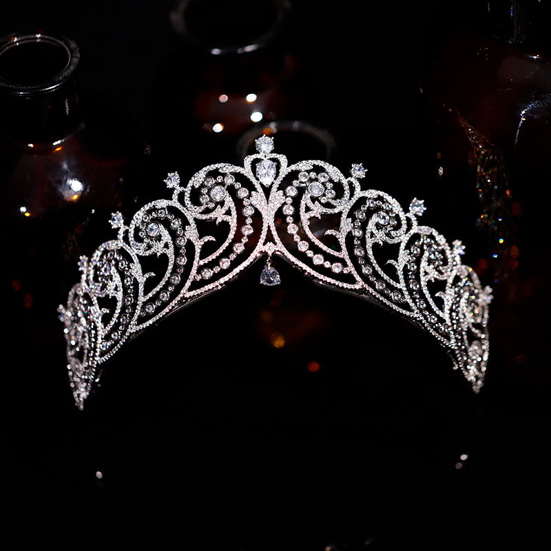 This high-end vintage court zircon crown stands as a masterpiece of elegance, seamlessly blending regal nostalgia with timeless glamour.